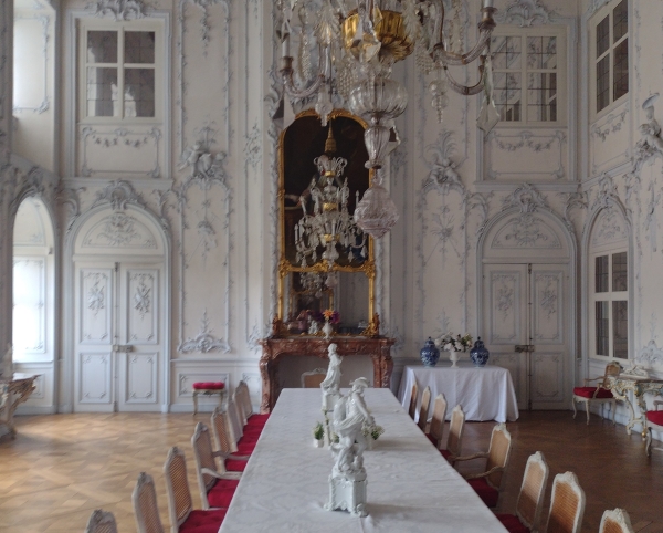 Der adelige Besitzer führte die Tegernheimer Besuchergruppe zuerst im Erdgeschoss in die geräumige Küche und anschließend in die Schlosskapelle. Der trapezförmige Kirchenraum geht über zwei Stockwerke und besitzt neben seiner Rokoko-Ausstattung von Ignaz Günther und Franz Xaver Feuchtmayer auch eine kleine Empore mit Orgel. Über ein Treppenhaus gelangte die Gruppe in den umlaufenden Innengang im ersten Geschoss. Dieser Verbindungsweg ist mit unzähligen Bildern und Sammlerstücken aus der Familiengeschichte geschmückt. Neben einigen weiteren Räumen, in denen jeweils ein Kachelofen steht, beeindruckte die Tegernheimer vor allem der große und über zwei Stockwerke gehende Festsaal. Er besitzt neben einer großen Tafelrunde in der Mitte ein Deckenfresko von Matthäus Günther sowie kunstvolle Rokokoschnitzereien und Stuckarbeiten. Laut Aussage des Schlossherrn gab sein Vater in diesem Raum auch viele Klavierkonzerte. Im zweiten Obergeschoss gab es vor allem Jagdtrophäen aus den vergangenen Jahrhunderten zu bewundern. Ein Lächeln zauberte der mittlerweile 85-jährige Schlossbesitzer mit einem alten Bild seines Großvaters den Besuchern ins Gesicht. Die beiden Fotografien in einem Bilderrahmen zeigen die Vorder- und Rückseite seines Großvaters und je nach der Beliebtheit des Besuchers stellte sein Ahn das Bild mit der einen oder der anderen Seite auf den Tisch. Zum Abschluss der Führung überreichte HGV-Vorsitzende Maria Blaimer zwei Flaschen des Tegernheimer Weins.